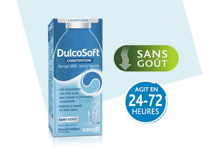 En complément des règles hygiéno-diététiques. Les dispositifs médicaux DulcoSoft® sont des produits de santé réglementés qui portent, au titre de cette réglementation, le marquage CE. DulcoSoft® Constipation sachet - fabricant : Fairpharm Vertriebs GmbH. CE0197. DulcoSoft® Constipation solution buvable – fabricant : Hälsa Pharma GmbH. CE0482.